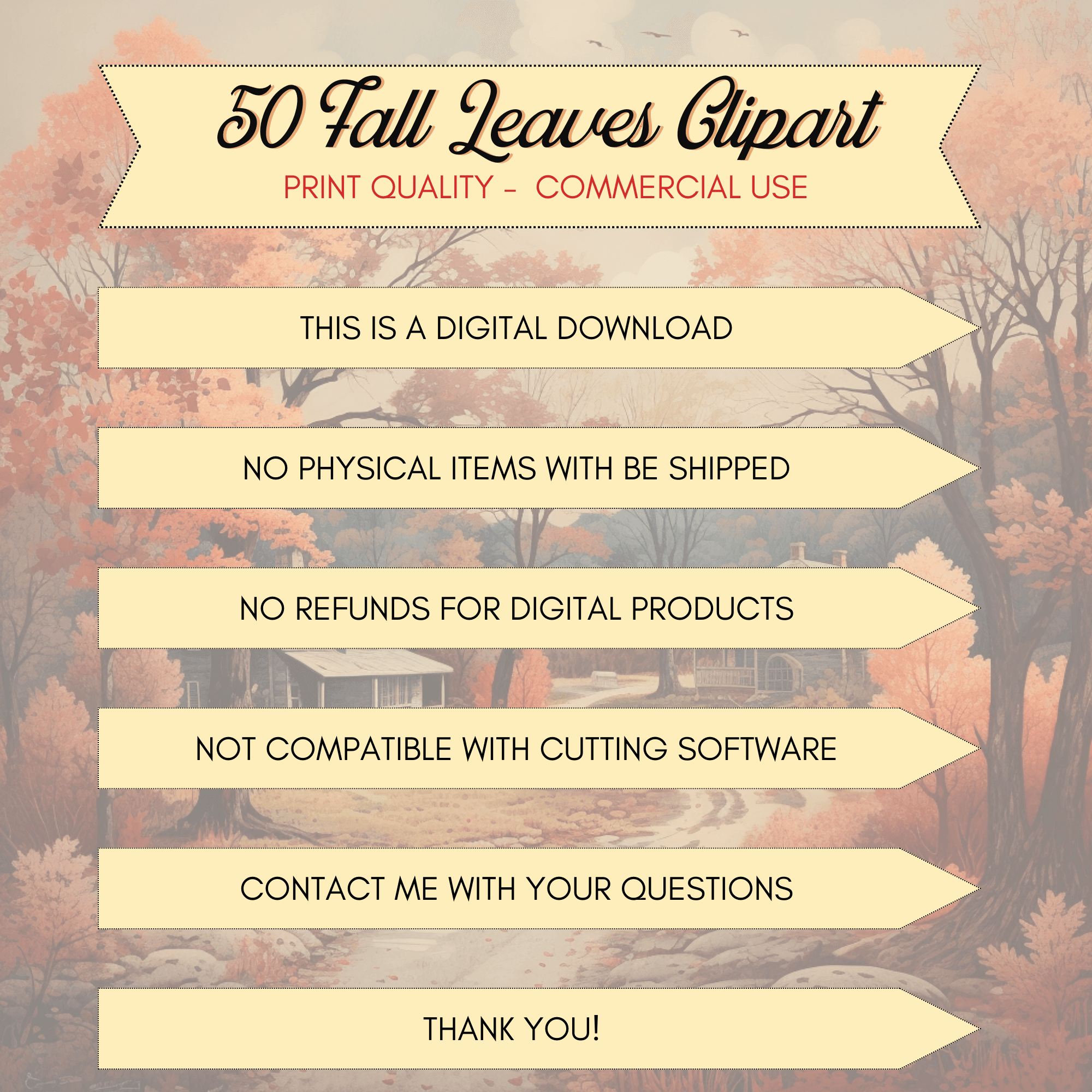 50 Fall Leaves Clipart, print quality, commercial use, commercial license, digital download, not compatible with cutting software, OSullivan Supply Co, OSCO, OSullivan Supply Co on Etsy, OSCO on Etsy